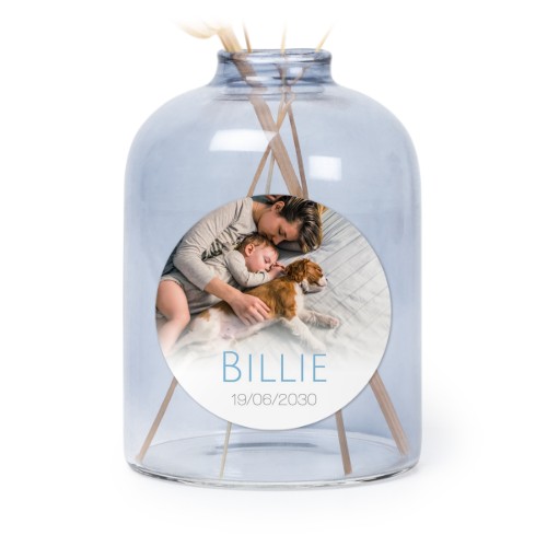 Kies je ontwerp voor Glazen vaasjes blauw met ronde sticker - set van 6